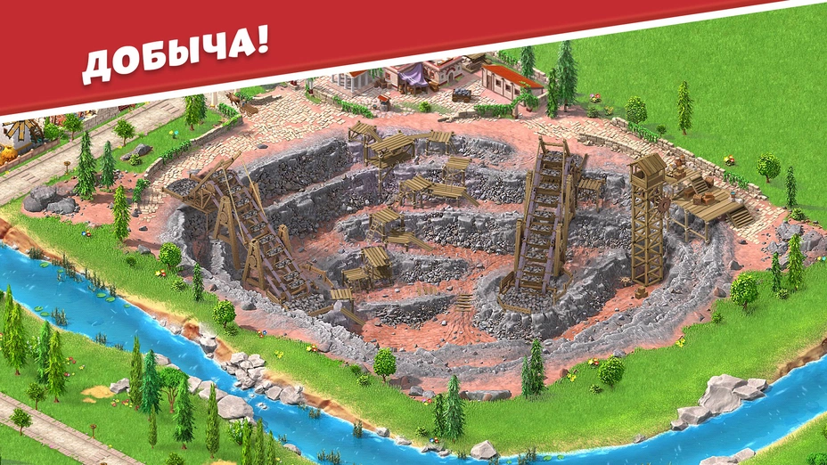 • 🪨 Добыча полезных ископаемых — камень, железо, золото, мрамор. Осваивай шахты и карьеры, чтобы обеспечить стройки материалами.